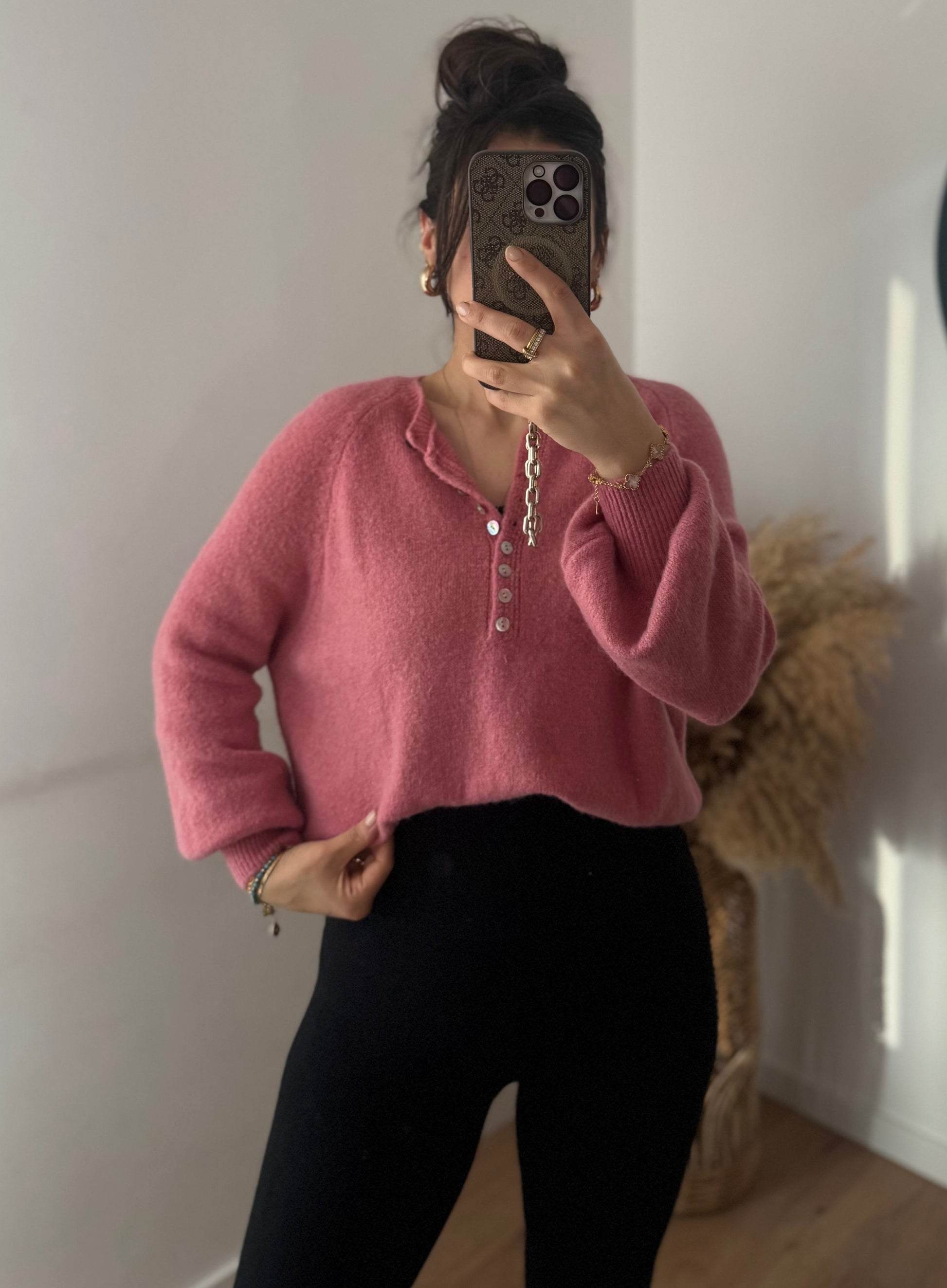 Alpaka Pullover mit Knopfleiste Sweetpink