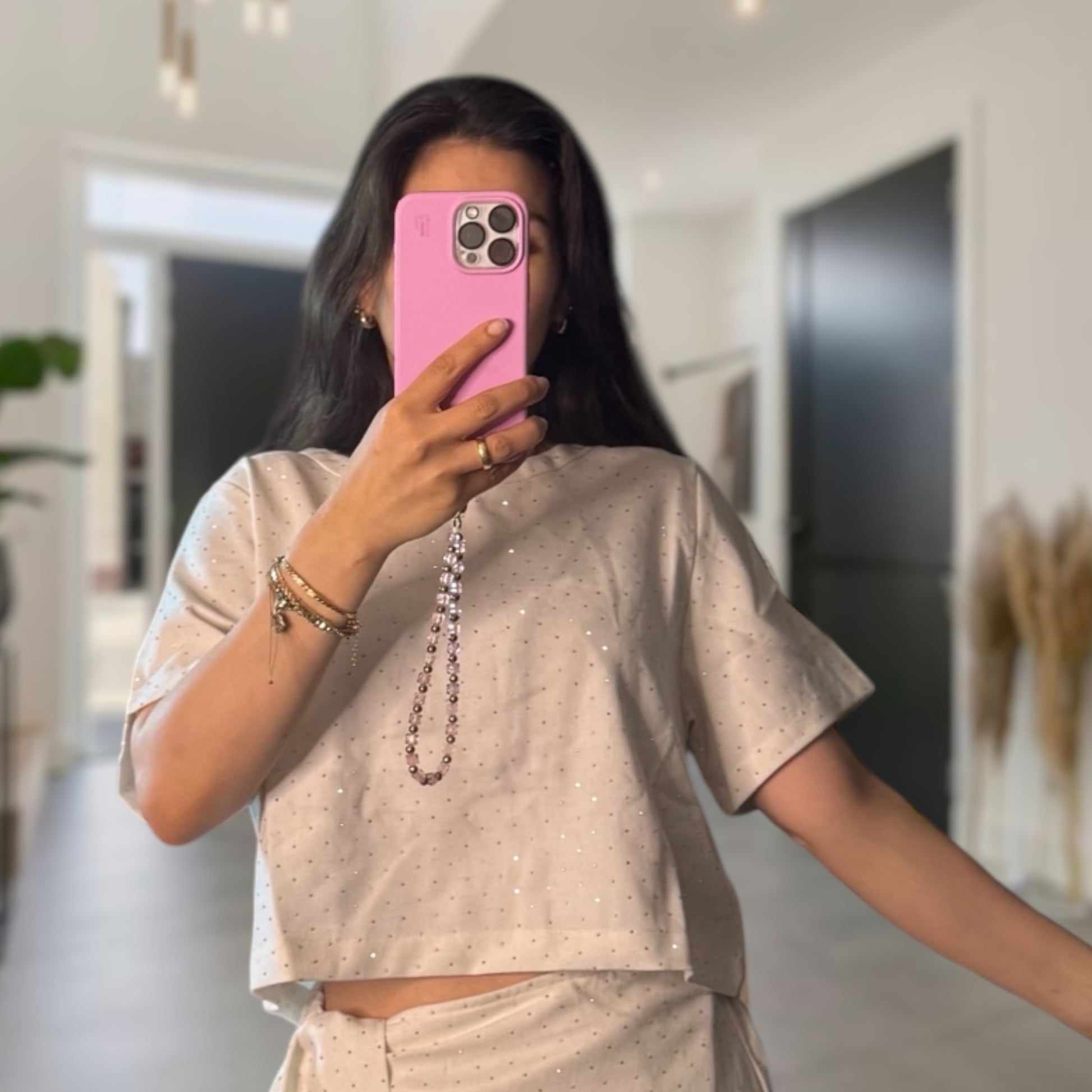 Glitzer top Leinengemisch