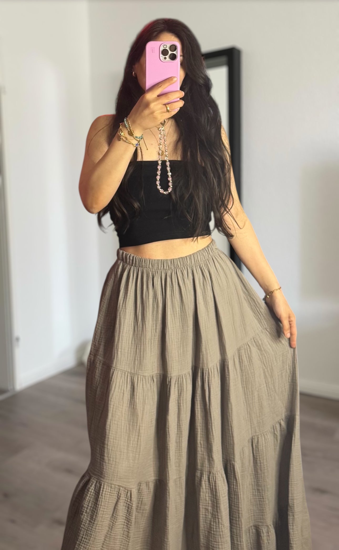 Langer Musselin Rock taupe