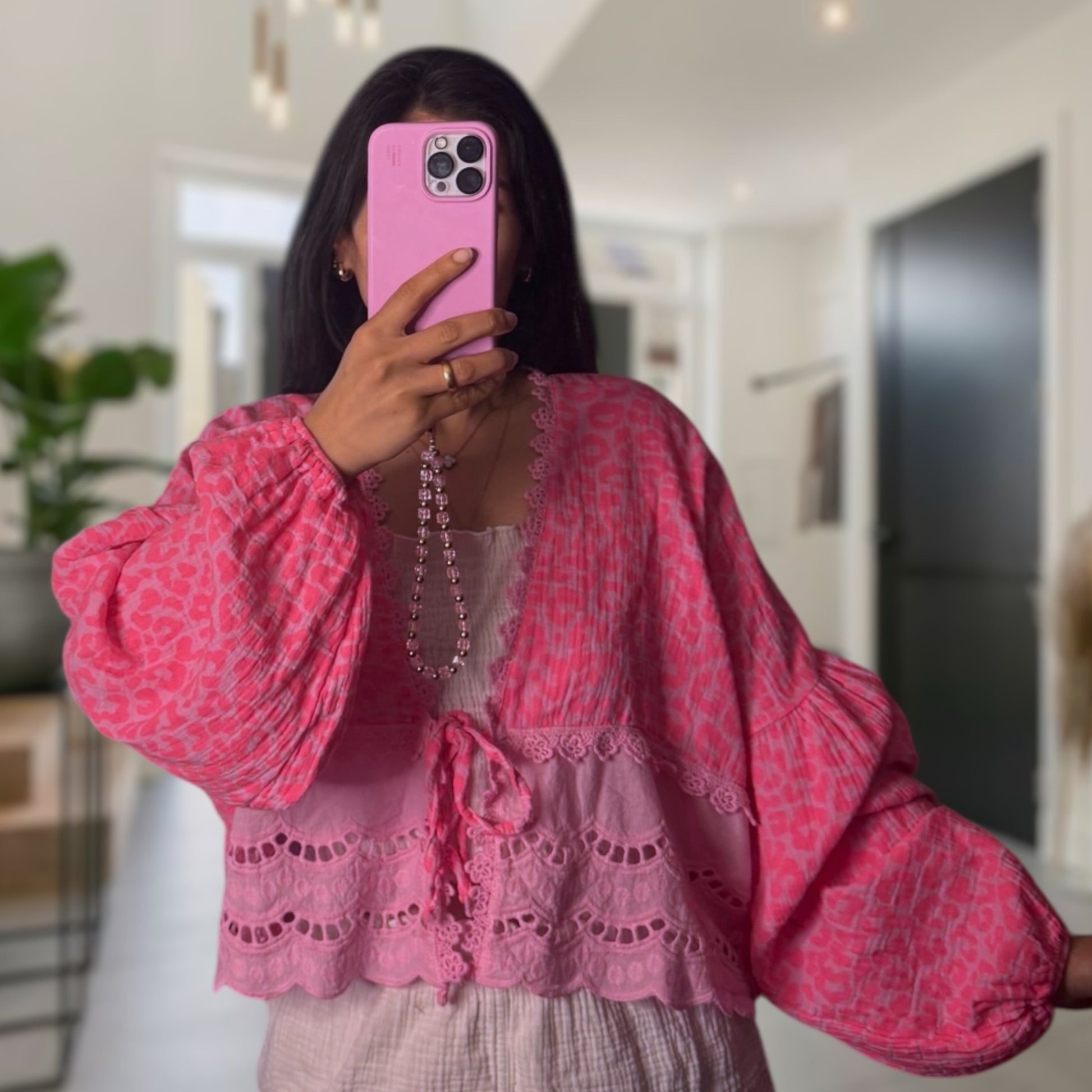Musselinbluse Häkel Leo rosa